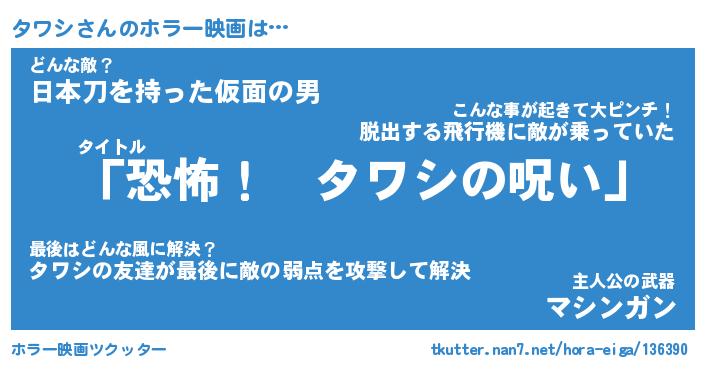 | ファンタジー風あだ名 | 『タワフェル』『エターナルタワシー』 |