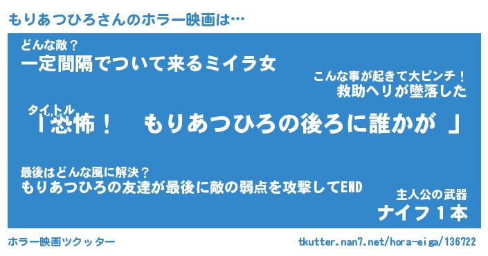| 男性向けラノベタイトル風あだ名 | 『もりあつひろの憂鬱』 |