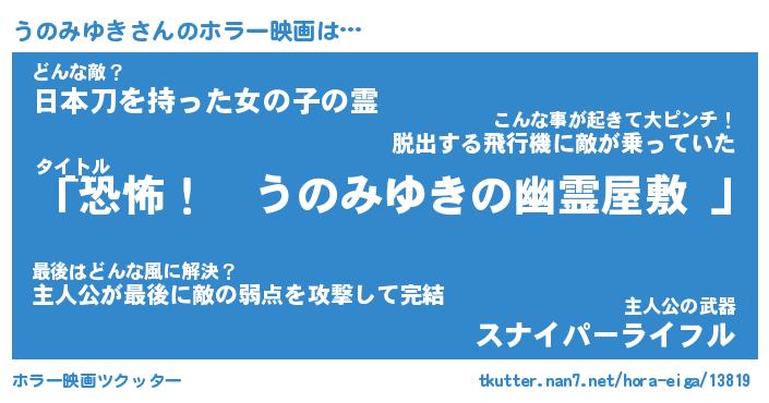 | 男性向けラノベタイトル風あだ名 | 『うのみゆきの憂鬱』 |