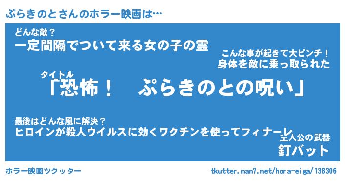 | 男性向けラノベタイトル風あだ名 | 『ぷらきのとの憂鬱』 |