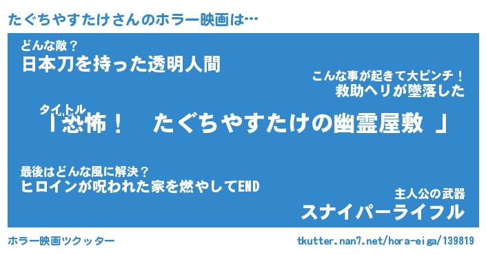 | 伝説のあだ名 | 『伝説のスナイパーたぐちやすたけ』 |