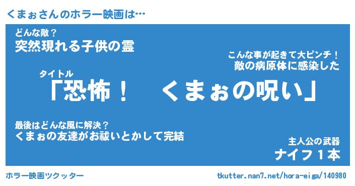 | 男性向けラノベタイトル風あだ名 | 『くまぉの憂鬱』 |
