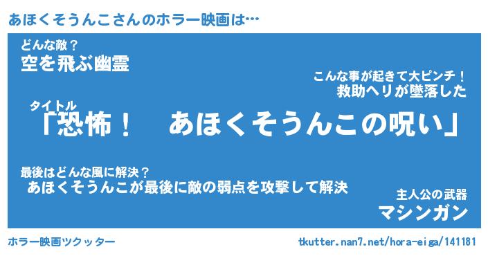 | 男性向けラノベタイトル風あだ名 | 『あほくそうんこの憂鬱』 |