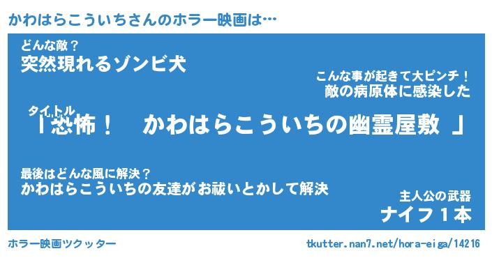 | 男性向けラノベタイトル風あだ名 | 『かわはらこういちの憂鬱』 |