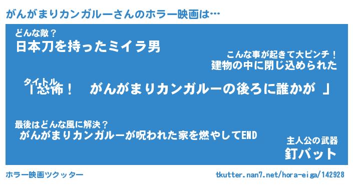 | 男性向けラノベタイトル風あだ名 | 『がんがまりカンガルーの憂鬱』 |