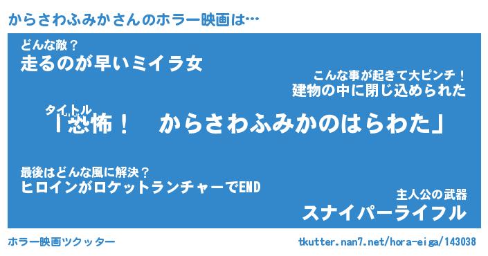 | ヒーロー風カッコイイあだ名 | 『スーパーカラサワフミカ』 |
