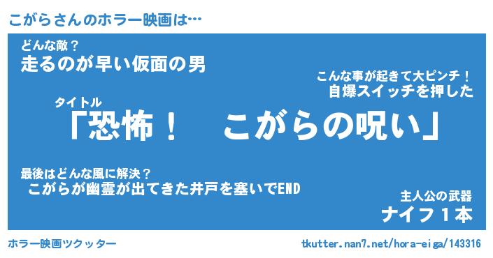 | ヒーロー風カッコイイあだ名 | 『スーパーコガラ』『ウルトラこがらマン』 |