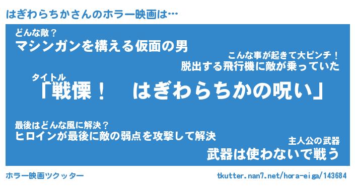 | 伝説のあだ名 | 『封印されし傭兵はぎわらちか』 |