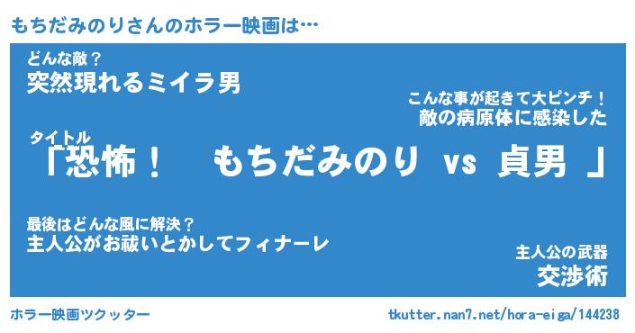 | 男性向けラノベタイトル風あだ名 | 『もちだみのりの憂鬱』 |