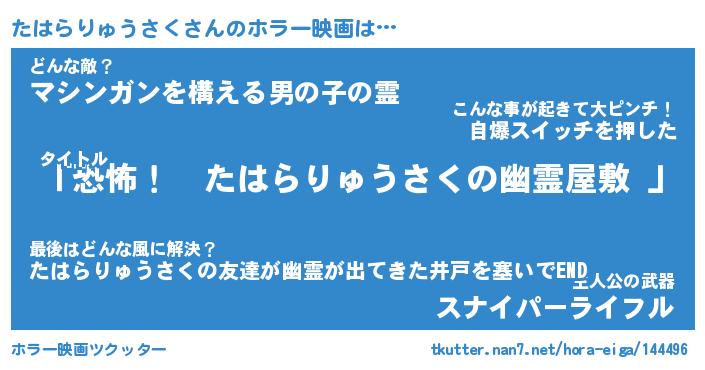 | 胡散臭い通販商品みたいなあだ名 | 『モテモテ間違いなし霊験あらたかなお札…その名も「たはらりゅうさく」』 |