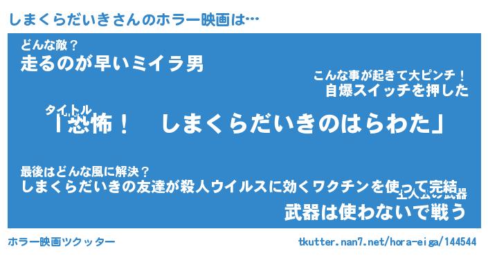 | 胡散臭い通販商品みたいなあだ名 | 『必ず成功するブレスレット…その名も「しまくらだいき」』 |