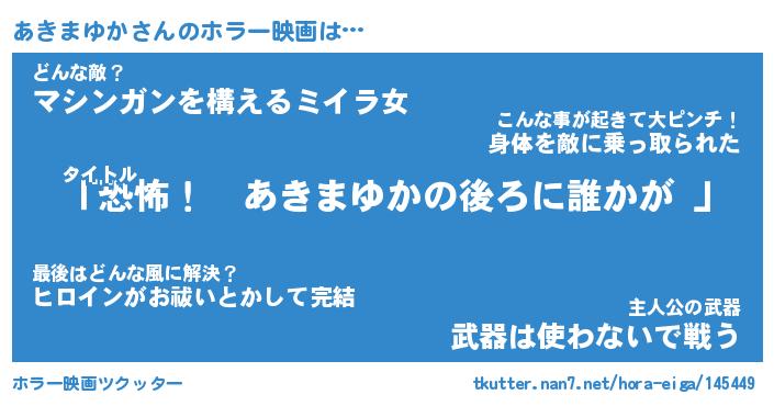 | 恥ずかしいあだ名 | 『プリティーあきまゆか』『あきっちょ』 |