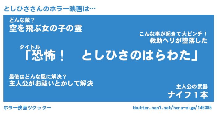 | 男性向けラノベタイトル風あだ名 | 『としひさの憂鬱』 |