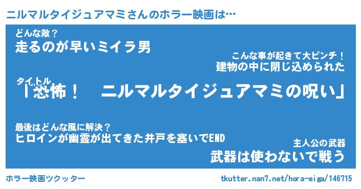 | 男性向けラノベタイトル風あだ名 | 『ニルマルタイジュアマミの憂鬱』 |
