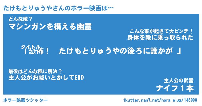 | 男性向けラノベタイトル風あだ名 | 『たけもとりゅうやの憂鬱』 |