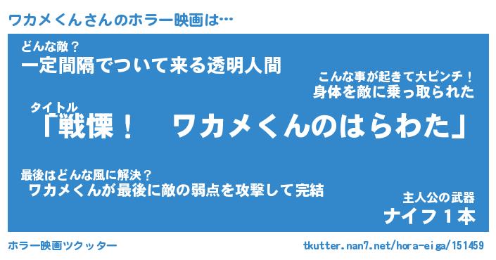 | 男性向けラノベタイトル風あだ名 | 『ワカメクンアートオンライン』 |
