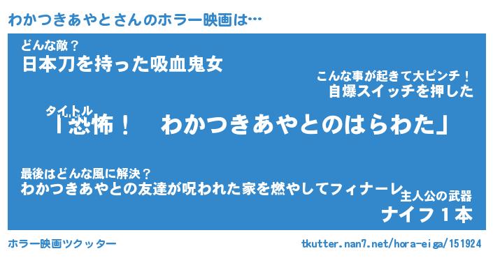 | 男性向けラノベタイトル風あだ名 | 『わかつきあやとの憂鬱』 |