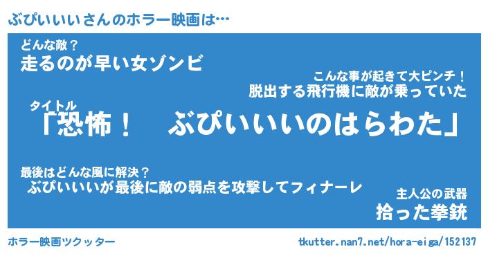 | 男性向けラノベタイトル風あだ名 | 『ぶぴいいいの憂鬱』 |