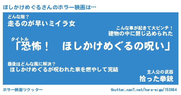 | 男性向けラノベタイトル風あだ名 | 『ほしかけめぐるの憂鬱』 |