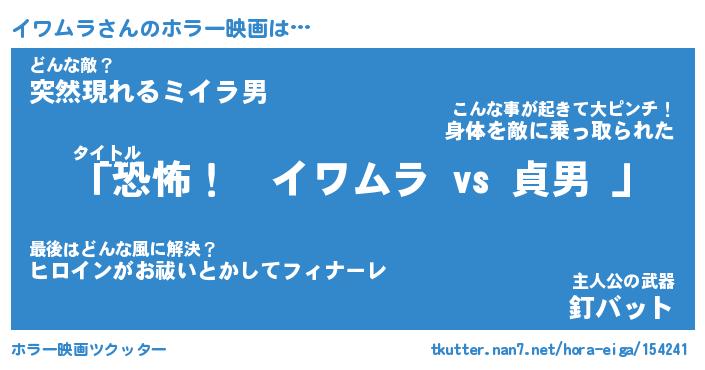 | ヒーロー風カッコイイあだ名 | 『スーパーイワムラ』『天弓騎士イワ』 |