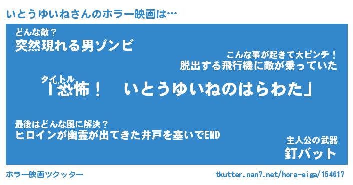 | 胡散臭い通販商品みたいなあだ名 | 『必ず成功するブレスレット…その名も「いとうゆいね」』 |