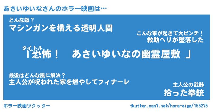 | 胡散臭い通販商品みたいなあだ名 | 『モテモテ間違いなし霊験あらたかなお札…その名も「あさいゆいな」』 |