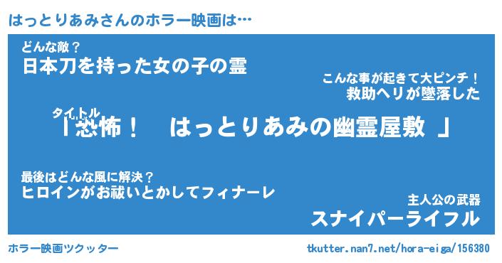 | 胡散臭い通販商品みたいなあだ名 | 『モテモテ間違いなし霊験あらたかなお札…その名も「はっとりあみ」』 |