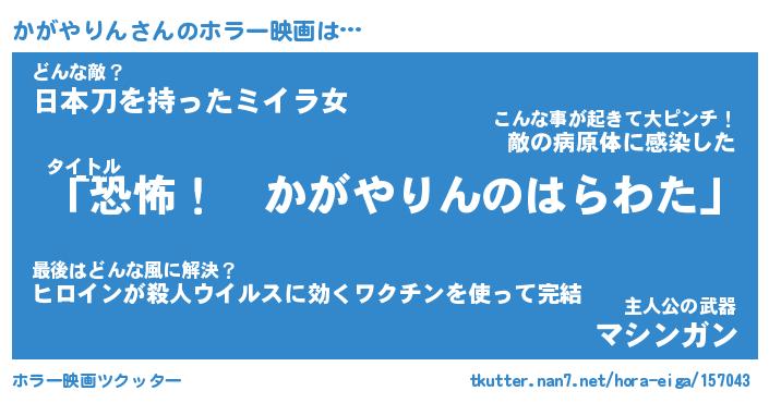 | 男性向けラノベタイトル風あだ名 | 『かがやりんの憂鬱』 |
