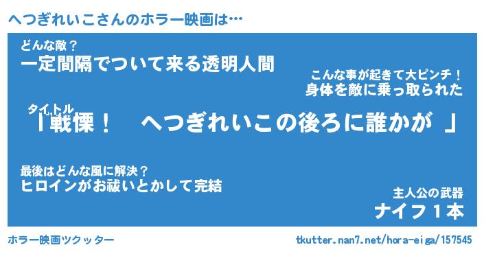 | 女子向けラノベタイトル風あだ名 | 『誰かこのへつぎれいこを説明してください! ~契約から始まるウェディング~』 |