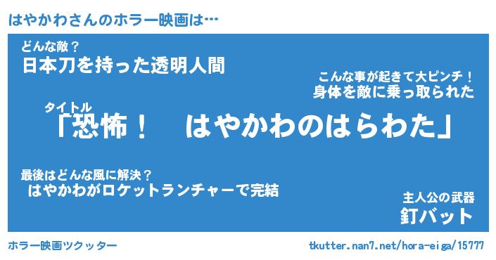 | 男性向けラノベタイトル風あだ名 | 『はやかわの憂鬱』 |