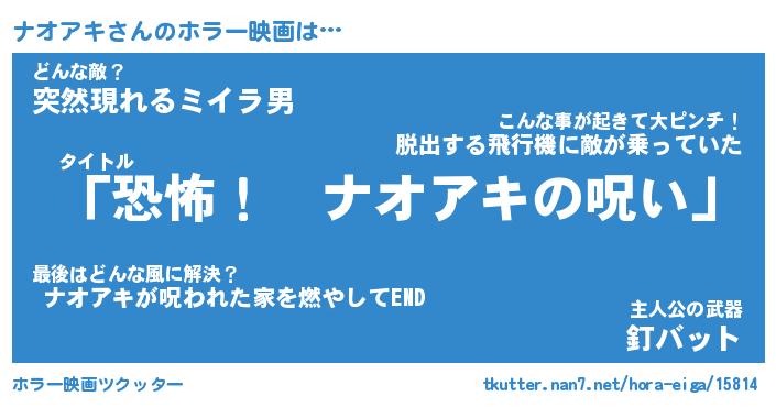 | 男性向けラノベタイトル風あだ名 | 『ナオアキの憂鬱』 |