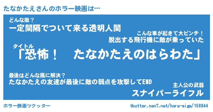 | 男性向けラノベタイトル風あだ名 | 『たなかたえの憂鬱』 |