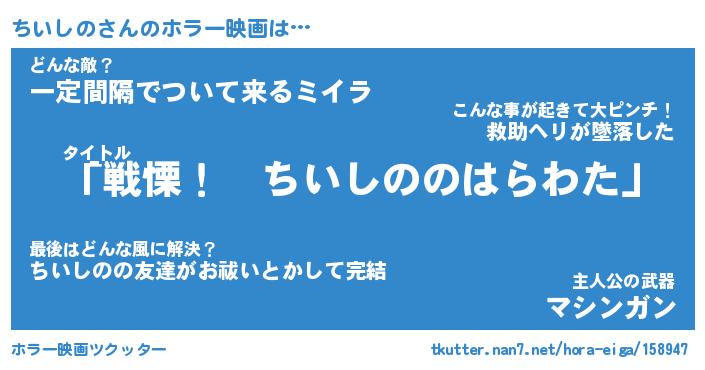 | ヒーロー風カッコイイあだ名 | 『スーパーチイシノ』『魔戒騎士チイ』 |