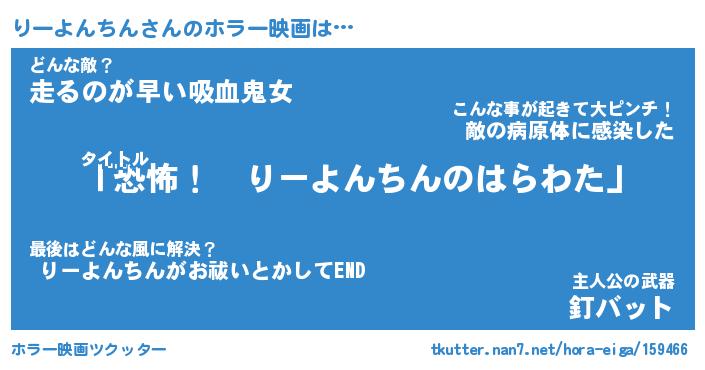 | 男性向けラノベタイトル風あだ名 | 『りーよんちんの憂鬱』 |