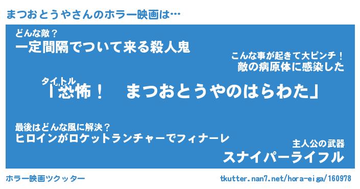 | 男性向けラノベタイトル風あだ名 | 『まつおとうやの憂鬱』 |