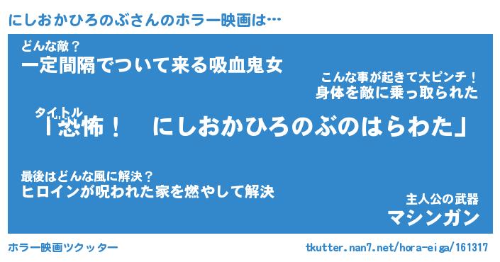 | 男性向けラノベタイトル風あだ名 | 『にしおかひろのぶの憂鬱』 |