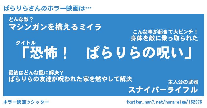 | ヒーロー風カッコイイあだ名 | 『スーパーパラリラ』『幻影騎士パラ』 |