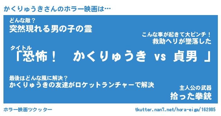 | 男性向けラノベタイトル風あだ名 | 『かくりゅうきの憂鬱』 |