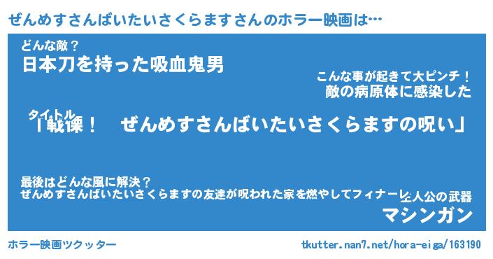| 男性向けラノベタイトル風あだ名 | 『ゼンメスサンバイタイサクラマスアートオンライン』 |