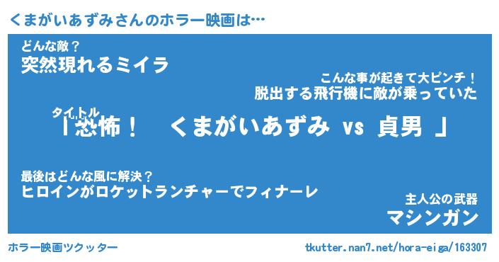 | 男性向けラノベタイトル風あだ名 | 『くまがいあずみの憂鬱』 |
