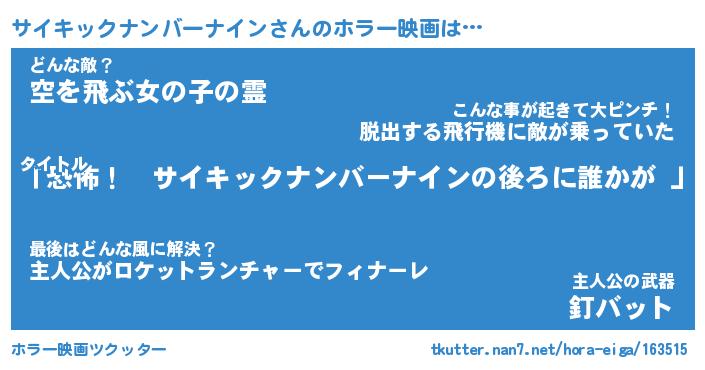 | 男性向けラノベタイトル風あだ名 | 『サイキックナンバーナインの憂鬱』 |