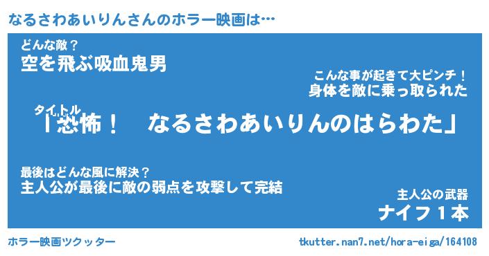 | 男性向けラノベタイトル風あだ名 | 『なるさわあいりんの憂鬱』 |
