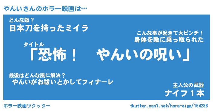 | 男性向けラノベタイトル風あだ名 | 『やんいの憂鬱』 |
