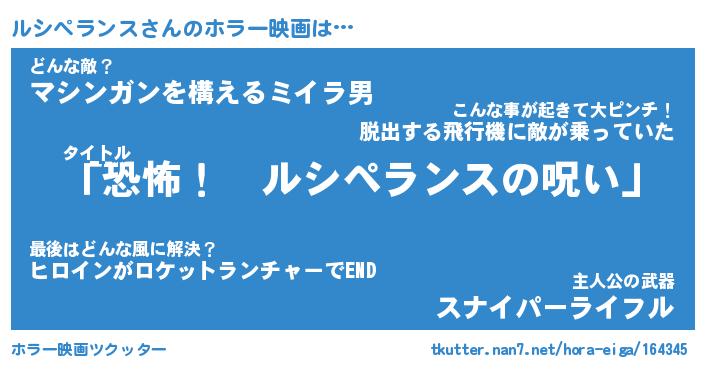 | 男性向けラノベタイトル風あだ名 | 『ルシペランスの憂鬱』 |