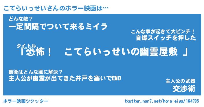 | 胡散臭い通販商品みたいなあだ名 | 『必ず成功する霊験あらたかなお札…その名も「こてらいっせい」』 |