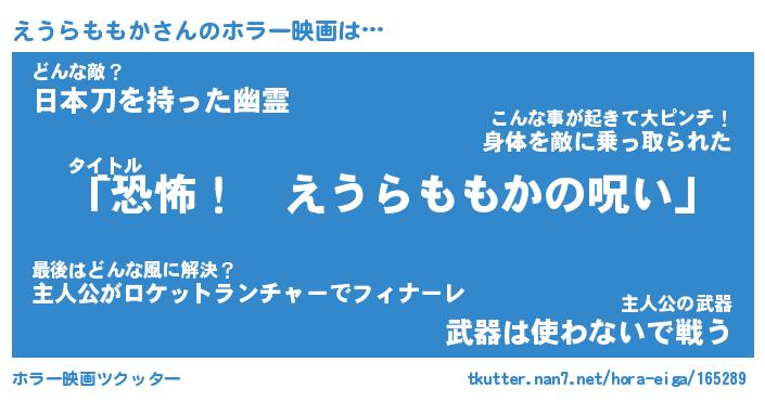| 胡散臭い通販商品みたいなあだ名 | 『必ず成功する水晶球…その名も「えうらももか」』 |