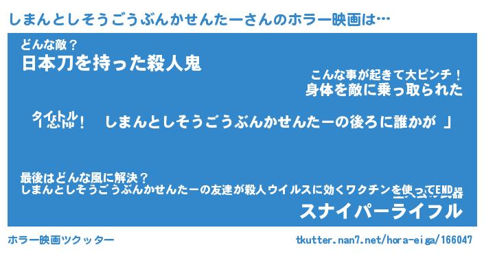 | 男性向けラノベタイトル風あだ名 | 『しまんとしそうごうぶんかせんたーの憂鬱』 |