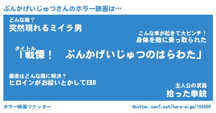| 男性向けラノベタイトル風あだ名 | 『ブンカゲイジュツアートオンライン』 |