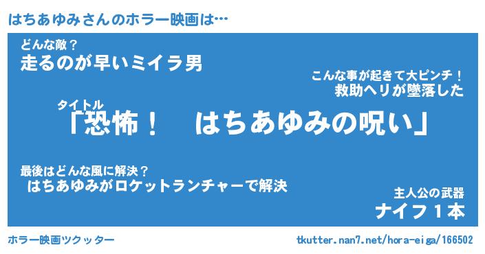 | ヒーロー風カッコイイあだ名 | 『スーパーハチアユミ』『黄金騎士ハチ』 |