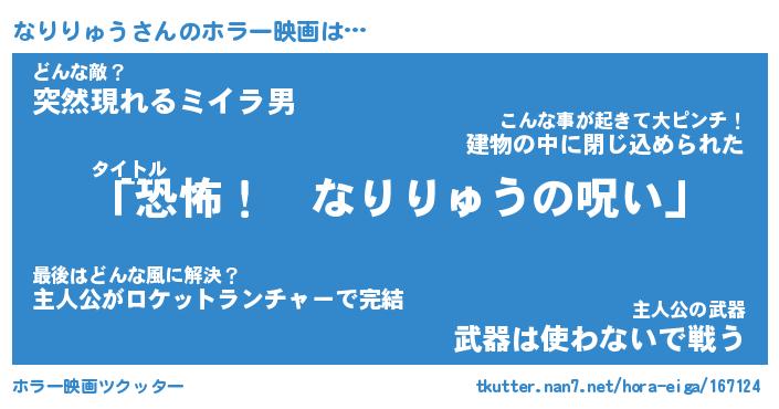 | 男性向けラノベタイトル風あだ名 | 『なりりゅうの憂鬱』 |